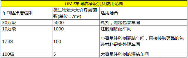 3、GMP車間潔凈級(jí)別及使用范圍
